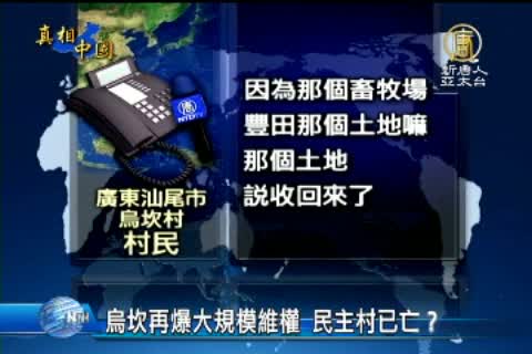 廣東汕尾市烏坎村曾經通過集體土地維權,成功罷免了貪官,並由民眾重新選舉出新任村官,被認為是大陸“民主選舉”的領頭村。經過一年多的波折,終於在今年4月26號取回了被前村官非法賣出的400畝土地——豐田畜牧場。但令村民氣憤的是,出現在他們眼前的農場被嚴重破壞。
