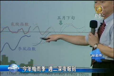 【新唐人亞太台2013年4月30日訊】5月梅雨季即將報到,氣象局上午宣布,今年第一道梅雨鋒面週二晚間就會報到,但真正的梅雨季,預計要等到下旬才會真正開始,而且「下雨天數」跟往年比較起來,恐怕也偏少。