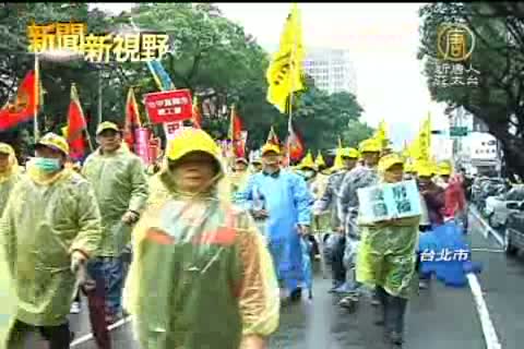 【新唐人亞太台2013年5月1日訊】今天是五一勞動節,全台數十個工會和勞工團體串連來到北市遊行,針對年金改革政策、基本工資工時和終結責任制過勞死等議題表達訴求,接近3萬人的遊行隊伍集結到行政院門口,要求和院長江宜樺當面溝通,場面一度相當激烈。
