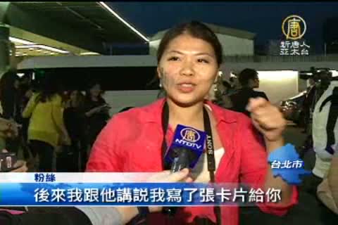 【新唐人亞太台2013年5月5日訊】結束四天三夜訪台行,威爾史密斯父子在今天晚間搭機離台,瘋狂的粉絲一路相隨,離上機前,威爾史密斯還走向粉絲握手簽名,現場一度混亂推擠,不過,把握最後機會拿到和偶像近距離接觸的粉絲說,很滿足。