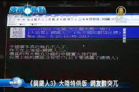 3號在台上映的《鋼鐵人3》,目前已突破4.4億台幣,擠進台灣影史好萊塢電影票房的第十名。不過,根據《華盛頓郵報》報導,由於受到中共的審查,五一假期在中國上映的《鋼鐵人3》,不得不徹頭徹尾的改成「中國特供版」,加入了大陸演員范冰冰和王學圻的戲份。