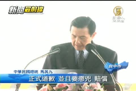 【新唐人亞太台2013年5月11日訊】新聞一開始,帶您先來關心,針對菲律賓海岸巡防隊船隻對我國漁船開火,造成「廣大興28號」一名漁民死亡的事件,馬英九總統今天(11日)再度要求菲律賓正式道歉、緝兇及賠償,保證不再發生,否則,將不排除動用任何制裁手段。