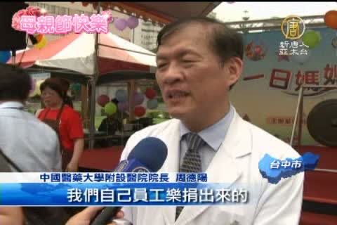 【新唐人亞太台2013年5月11日訊】母親節前夕,中國醫藥大學附設醫院的員工捐出大批全新物品舉辦義賣會,將所得全數捐給收容重度障礙兒的台中育嬰院。 除了義賣活動,院內的員工也當起「一日媽媽」,帶著這些院童一起包水餃,提前度過一個特別的母親節,帶您來看看。