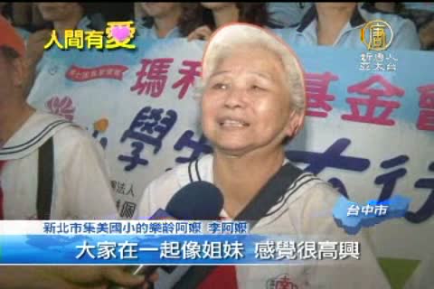 【新唐人亞太台2013年5月13日訊】行善做公益,超越年齡的限制。日前在台中市大墩國小,有一場近千名小學生大會師,受獎的還有35位來自新北市集美國小永遠的「小學生」、70多歲的阿公、阿嬤,她們身穿小學生制服到場領獎。