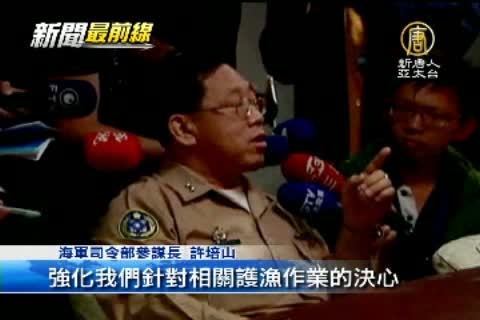 【新唐人亞太台2013年5月16日訊】菲律賓公務船掃射台灣漁船、造成屏東籍漁民洪石成不幸身亡的事件。在菲律賓仍然不願正面回應的情況下,國防部、海巡署也在今天(16日)進行聯合護漁操演。台灣船艦在清晨3點50分首度越過暫定執法線,目前仍持續往南航行。