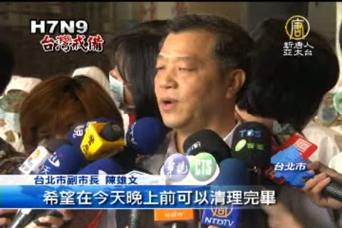 而因應H7N9禽流感疫情,北市最大的家禽批發市場─環南市場,舉行感染廢棄物處理演習,模擬雞隻感染H7N9病毒,政府單位第一時間撲殺雞隻。