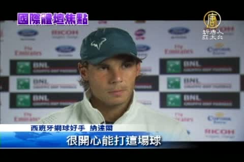 【新唐人亞太台2013年5月16日訊】在羅馬名人賽第二輪中,西班牙蠻牛納達爾輕鬆打贏義大利選手弗格尼尼。另一方面,費瑞爾也打贏同樣來自西班牙的沃達斯科,順利晉級。