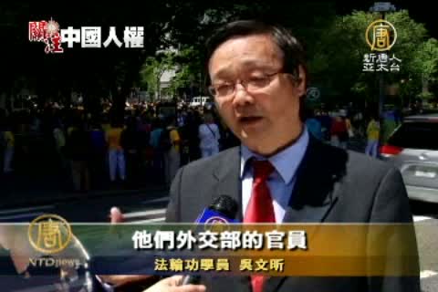 記者:「在國際社會民眾對迫害的真相普遍了解的情況下,法輪功學員呼籲:聯合國和各個國家的政府和各個機構組織積極採取行動,儘早結束迫害。新唐人記者蘭青紐約報導。」