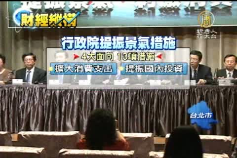 【新唐人亞太台2013年5月28日訊】針對GDP下修為2.4%,一舉跌破3%,景氣持續沒有起色。行政院今天(28日)宣布提升景氣方案,祭出各項措施與補助,希望短時間內收到效果,讓景氣回升,而目標是經濟成長率達到百分之三。