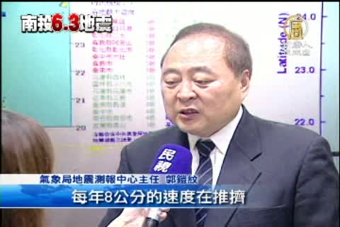 「在這個區域在921之前,曾經有很長的一段時間是所謂的地震空白區,這邊完全不發生地震,連小地震都很少,造成(今年)這兩次地震的原因,其實還是菲律賓海板塊向西北,每年8公分的速度在推擠。」