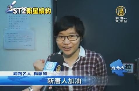 【新唐人亞太台2013年6月3日訊】新唐人與中華電信的中新二號衛星(ST2)續約,持續受到海內外關注,包括台灣多位縣市首長與各領域名人。在台灣網路圈有卡神稱號的楊蕙如強調,新唐人是有國際公信力的優質媒體,她呼籲大家用輿論力量,守護能突破中共封鎖的新唐人。