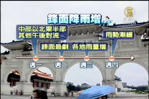 氣象局預估週二、週三兩天是鋒面影響最劇烈的時間,各地降雨增加,尤其北台灣雨勢最明顯。
