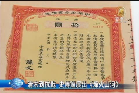 【新唐人亞太台2013年6月7日訊】歷史博物館從六月起展出為期兩個月的《烽火山河》展覽,總共有三百多件史料文物,橫跨的時代從鴉片戰爭到抗戰時期,帶您一窺民國時期,二次革命,新生活運動,五三慘案等重大歷史事件的不同面貌。