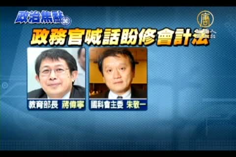 教育部長蔣偉寧,國科會主委朱敬一,還有中研院長翁啟惠喊話,希望還是要修會計法,希望學術界公款公用的報帳,都能合法。