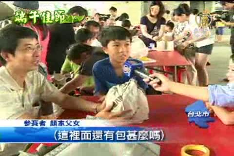 【新唐人亞太台2013年6月12日訊】全台慶端午!今天台北大佳河濱公園舉行一場,高空立蛋比賽;從七公尺高處拋下包裝過的雞蛋,看誰能完好如初。現場五花八門的設計,展現每隊參賽家庭的創意。