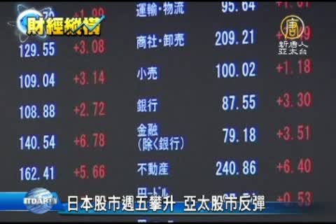 亞太股市週五(14號)也普遍反彈回升。在澳洲股市方面,反彈2.1% ,創下18個月來單日最大漲幅,隔夜美股大漲,讓高收益股在績優金融股的引領下上揚,支撐大盤。