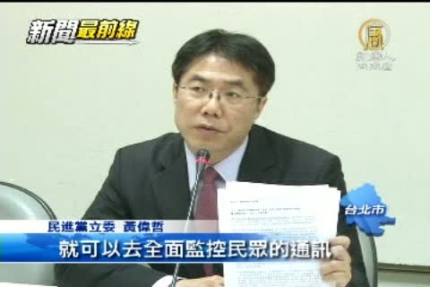 民進黨立委 黃偉哲:「變成政府可以合法的,以非常薄弱的理由,甚至不需要任何理由,就可以去全面監控民眾的通訊。」