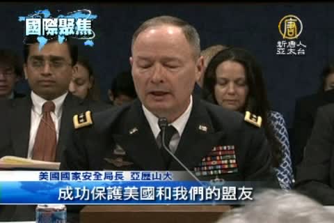 【新唐人亞太台2013年6月19日訊】美國監聽計畫持續引發辯論,週二(18號)美國國安局長、FBI和司法部官員到眾議院聽證會備詢,國安局長亞歷山大表示,監控計畫已經成功阻止包括紐約地鐵爆炸等超過50次的恐怖攻擊,對於國家安全非常重要。