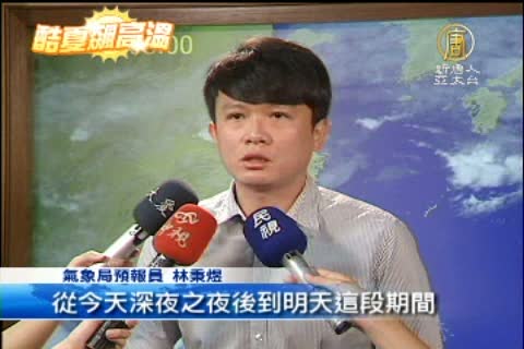 【新唐人亞太台2013年6月23日訊】新聞一開始首先帶您關心天氣情況,不知道您有沒有感覺,這幾天非常悶熱呢?隨著西南風增強影響,全台炙熱的天氣,紫外線都到達過量等級,也會出現35度高溫,再加上西南風帶來水氣,從今天深夜開始到週四之前,氣象局針對中南部地區發布大雨特報,因此中南部地區的民眾,恐怕沒機會欣賞到今年最大的滿月。