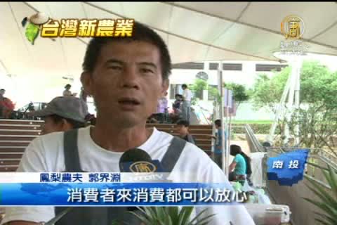 鳳梨農夫 郭界淵:「17號鳳梨(金鑽)這段時間剛好是它的節氣,所以吃起來軟絲又甜,牛奶鳳梨產期比較慢,牛奶鳳梨種起來品質很好。在這裡賣的鳳梨都有經過農藥檢驗,消費者來消費都可以放心。」