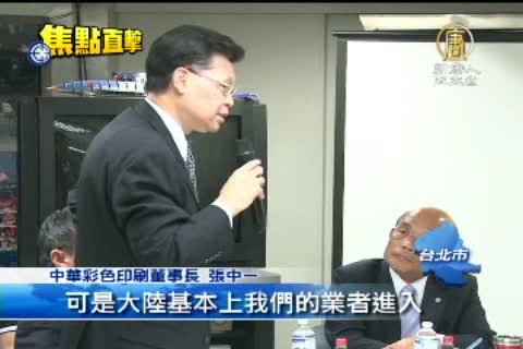 中華彩色印刷董事長 張中一:「可是大陸基本上我們的業者進入,他有很多的限制,在這種情況之下,我們猝然把他開放,當然對我們業者,產生不對等的情況。」