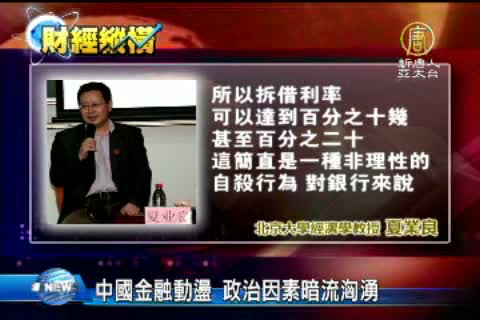 【新唐人亞太台2013年6月29日訊】好,接下來帶您關心中國經濟,6月25號,就在中國央行發布一份安撫聲明後,算是解除了投資者對於中國銀行同業借貸市場流動性缺乏的擔憂,而中國股市,也停止了暴跌。不過儘管如此,許多問題並沒有明朗,包括,究竟是什麼原因造成這場金融動盪?目前仍然不明。