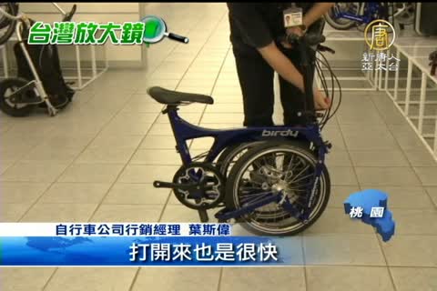 自行車公司行銷經理 葉斯偉:「打開來也是很快,先把把手立起來,把前輪摺起來,最後再把後輪打開,最後再把坐管豎起來,這樣就可以騎了。」