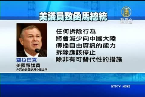 央廣天馬台廣播天線遭拆除,引起各界關注。日前已經有多位重量級美國議員,寫信給馬總統,呼籲台灣延遲拆除計畫。美國眾議員外交委員會歐洲小組主席羅拉巴 克,上周致函馬總統,信中提到:這些天線是向中國大陸廣播,而不被審查的新聞資訊,是有力的戰略性資產。持續傳輸短波,可以超越受到控制的網絡,這既是台 灣,也是美國的利益所在。任何拆除行為將會減少向中國大陸傳播自由資訊的能力,拆除應該停止,除非有可替代性的措施。