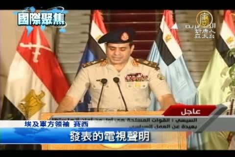 埃及軍方宣布,除了暫停憲法,還將提早舉行總統和國會大選,目前由埃及憲法法庭暫時代理總統職務,總統穆希遭到軟禁。