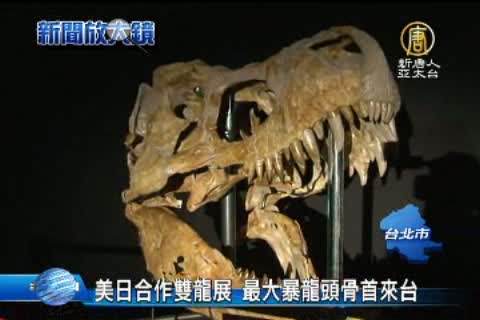 【新唐人亞太台2013年7月5日訊】全世界最大的暴龍頭骨,遇到最大的機械暴龍,美國和日本跨國合作的「雙龍展」,第一次來到台灣,要在台北的科學教育館展出兩個月,帶您一起走進逼真的恐龍世界。