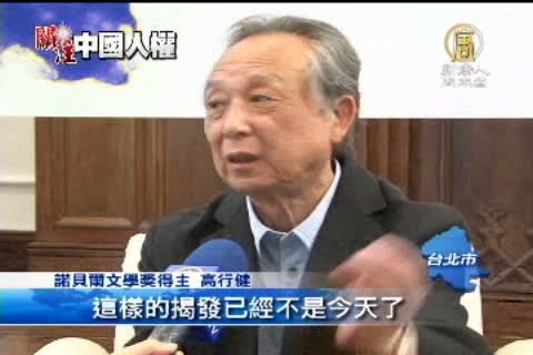 諾貝爾文學獎得主 高行健:「勞教,勞教不合法的嘛,憑甚麼勞教,這樣的揭發已經不是今天了,從來,從來是這樣,但是中共沒有改變,一直沒有改變,這個做法就是,你要講人權,這起碼的人權,怎麼可以隨便勞教呢?」