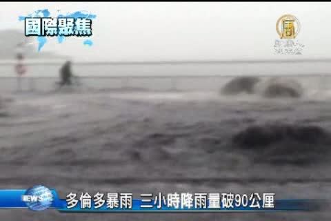 加拿大多倫多當地時間星期一(8號)下午,遭大雷雨襲擊,多倫多部分地區三小時內的降雨量超過90公釐,打破 2008年單日29.2公釐的記錄。