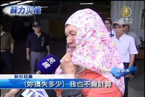 【新唐人亞太台2013年7月14日訊】這次全國農損粗估超過2億6千萬元,其中又以台中、宜蘭兩地的損失最為慘重,行政院長江宜樺在上任之後,首度下鄉來勘災,14日上午他前往台中新社,而菇農淚眼相求,希望政府能幫幫忙。