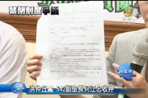 【新唐人亞太台2013年7月16日訊】軍檢調查洪仲丘案,昨天(16日)晚上約談542旅副旅長何江忠後,認為有犯罪嫌疑轉列被告,並且在今天凌晨聲請羈押後,法院裁定獲准,成為案件第一位被收押的軍官。