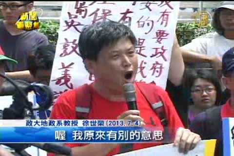 (2013.7.7)聲援學生:「今天它可以虛構一些原因就來拆你家的話,其他人,就是台灣的所有人其實都有可能會遇到這樣的情況,只要你家的房子跟政府要的利益有衝突的話。」