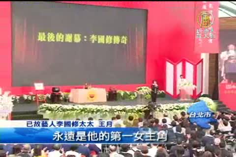 【新唐人亞太台2013年7月18日訊】台灣戲劇大師,李國修在7月2日,因癌症病逝,今天在圓山花博舞蝶館舉辦追思會,找來擅長幽默搞笑的曾國城擔任主持人,因為李國修的遺願交待,希望大家能開心的送他離開,不過到場的藝人好友全都紅了眼眶,現場還有三千位戲迷到場,要送這位戲劇大師最後一程。