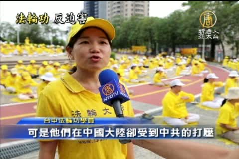 台中法輪功學員:「中國大陸它有很多,超過1億人以上的人在修煉法輪功,可是他們在中國大陸卻受到中共的打壓,然後就是被迫害,然後甚至被活摘器官。」「基於這個正義和道德的這個,這個方面我們是絕對是,沒有辦法去認同它(中共)的,所以我們就要來這邊反迫害。」