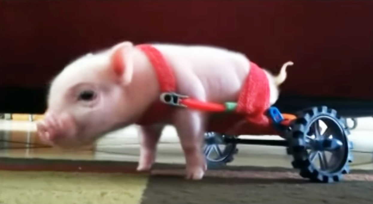 克里斯在YouTube的點擊率在兩周內達到47萬4千次。牠還有一個特別可愛的小輪椅。" 是它的主人從兒童積木玩具中找出幾個配件做成的。她的可愛小輪椅以及他奮力吸奶的可愛畫面,讓他成為最可愛的小豬。目前克里斯已經長得太大了,牠將很快會換一個更持久和堅固的新輪椅。