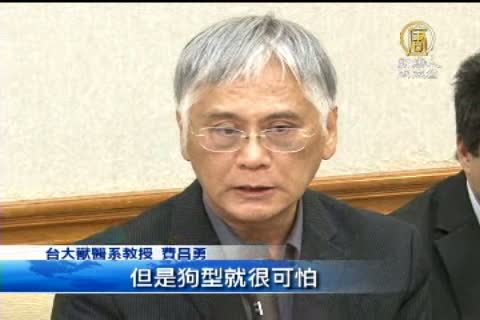 台大獸醫系教授 費昌勇:「目前狂犬病的基因型,是鼬獾型,它不是狗型,因為狂犬病的病毒它要經過二、三十年的演化,它才適應在某一種動物,所以鼬獾型它要轉到狗型,它感 染狗的感染率不會很高,比如10隻可能只有3隻成功,但是狗型就很可怕,但是我們台灣目前是沒有狗型的。」