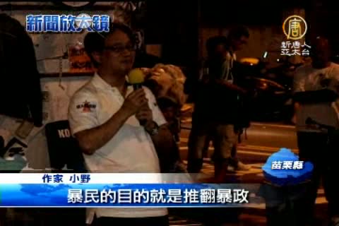 「我本來是個善良的人民,我只要寫作過日子,做阿公,我有兩個孫子,現在我願意做暴民,因為這個暴民幾乎是被逼出來的,暴民的目的就是推翻暴政。」