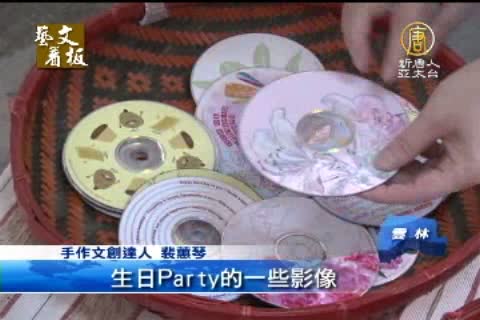 手作文創達人 裴蕙琴:「光碟貼紙,因為我喜歡收納,所以會儲藏一些,出去郊遊聚餐、生日party影像,存在這個光碟裏面,總覺得說光碟外面都很單一,所以就為它做這樣的設計。」