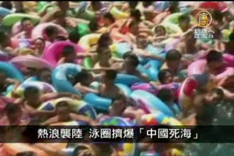四川省有個含礦物鹽高達22%的「海水」被稱為「中國死海」,在這裡戲水的遊客能自然漂浮,因此成了新夯旅遊景點。不過,今年夏天熱浪來襲,密密麻麻的人群擠滿水面。在佔地3萬平方公尺的泳池裡,根本無法游泳,連要跳下水都不見得找到的空隙。