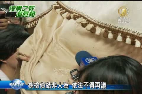 桃園地檢署上午偵辦,洪仲丘案湮滅證據,全案不起訴偵結,檢方認定,監視器畫面非人為因素遺失,依法不得再議。