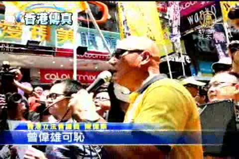 香港立法會議員陳偉業:「法輪功給他們滋擾一年多,你們可以肆無忌憚地不理,這是不是曾偉雄的立場,曾偉雄可恥。」