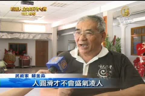 【新唐人亞太台2013年8月9日訊】知名武術家蘇金淼,是雲林縣順武堂第四代的武術傳人,也是台灣武館在南非的開拓者,早期遠赴南非授課,目前已有24家武館,超過6000名徒弟,不過,一心嚮往回台的蘇金淼,最後還是回到台灣,將傳統武術和武德教育,深入到台灣的每塊土地 。