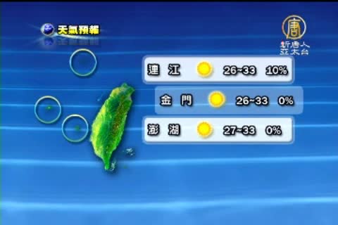 【新唐人亞太台2013年8月11日訊】以下帶您關心8月12號星期一,全台各地以及世界各主要城市的天氣預報。