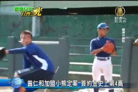 【新唐人亞太台2013年8月13日訊】台灣棒球好手「土虱」曾仁和,已經完成美國職棒大聯盟簽約程序,確定以162.5萬美元加盟美國職棒大聯盟小熊隊,成為繼曹錦輝、王建民、林子偉之後,大聯盟簽約金第4高的台灣球員。曾仁和明天晚間將搭機前往澳洲雪梨小聯盟集訓10天,預計9月初再到美國芝加哥小熊隊報到。