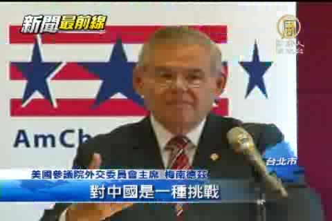 美國參議院外交委員會主席 梅南德茲:「我不覺得美國重返亞洲政策對中國是一種挑戰,我認為這是為建立一個以規則為基礎(rule-based)的制度,所做的努力,我們也希望這個地區所有的國家,包括中國都能夠欣然接受。」