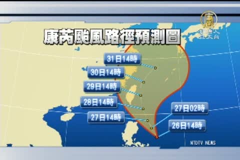 【新唐人亞太台2013年8月26日訊】新聞一開始,先來帶您關心,潭美颱風才剛剛走,又有新的颱風報到。中央氣象局表示,今天下午2時菲律賓東方的熱帶性低氣壓增強為輕度颱風,命名為康芮,最快27日下半天發布海上颱風警報。預估路徑朝台灣東部海域前進,星期四到星期五,是影響台灣最劇烈的時候。