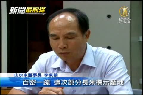【新唐人亞太台2013年8月27日訊】市占率是國內第三大品牌的山水米被踢爆做假,以進口劣質米冒充台灣米搶市,山水米董事長李東朝今天親上火線,對社會大眾鞠躬道歉,面對媒體,李東朝仍強調是產地標示錯誤,被爆料的山水佳長米是從越南進口,但他否認是劣質米。目前山水佳長米在國內銷售已經超過五萬包,業者表示會讓消費者全額退費。